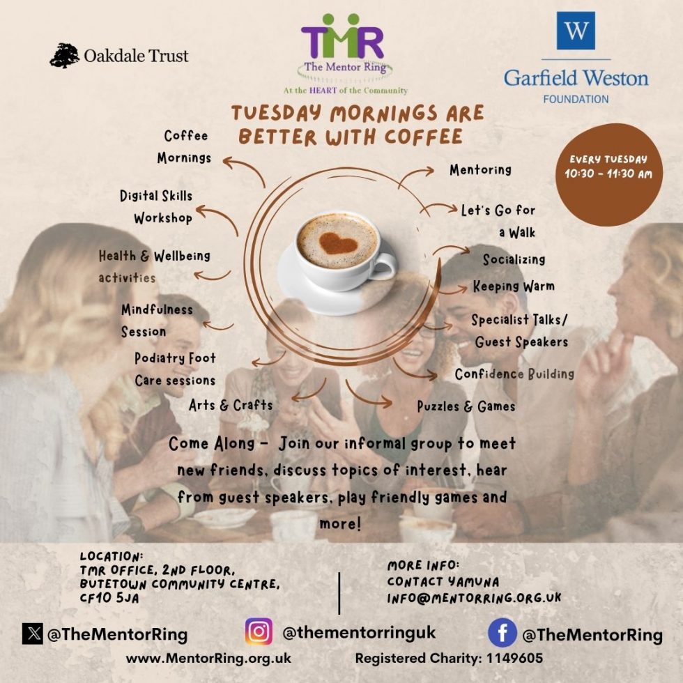 11 November Tuesday Coffee Morning, 11th November 2025Tuesday Coffee Morning, 11th November 2025Date 11/11/2025Time 10:30 am - 11:30 amVenue Butetown Community CentreOrganiser The Mentor RingMore Info